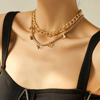 مجوهرات عبر الحدود الأوروبي والأمريكية الموضة سلسلة مخلب الشارع فراشة مزدوجة الطبقة قلادة